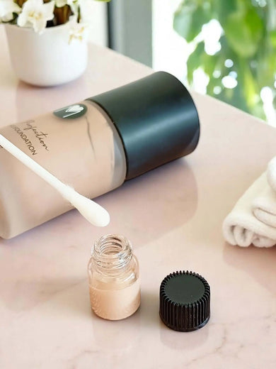 Hoogwaardige minerale foundations (zoals die van Mineralissima) bieden een opbouwbare dekking. Je kunt alles bereiken, van een lichte, alledaagse look tot volledige dekking zonder de poriën te verstoppen.
