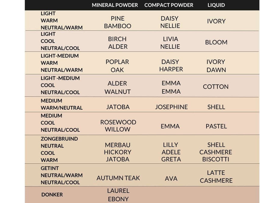 Je teint is de algemene kleur van je huid. Bij Mineralissima verdelen we onze foundations in zes hoofdcategorieën:
